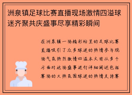 洲泉镇足球比赛直播现场激情四溢球迷齐聚共庆盛事尽享精彩瞬间