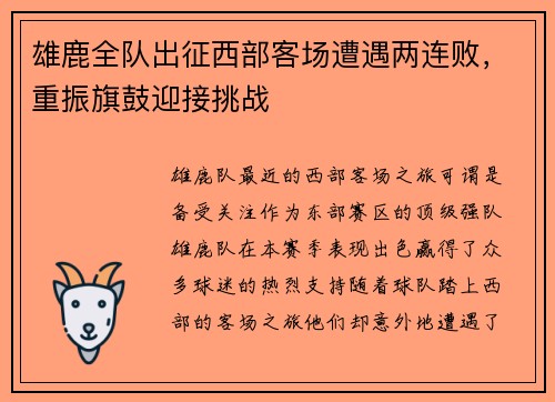 雄鹿全队出征西部客场遭遇两连败,重振旗鼓迎接挑战