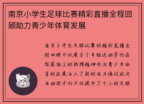 南京小学生足球比赛精彩直播全程回顾助力青少年体育发展