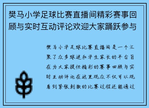 樊马小学足球比赛直播间精彩赛事回顾与实时互动评论欢迎大家踊跃参与