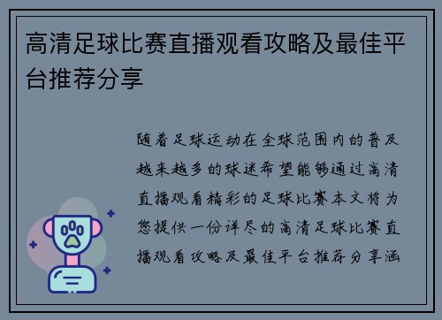 高清足球比赛直播观看攻略及最佳平台推荐分享